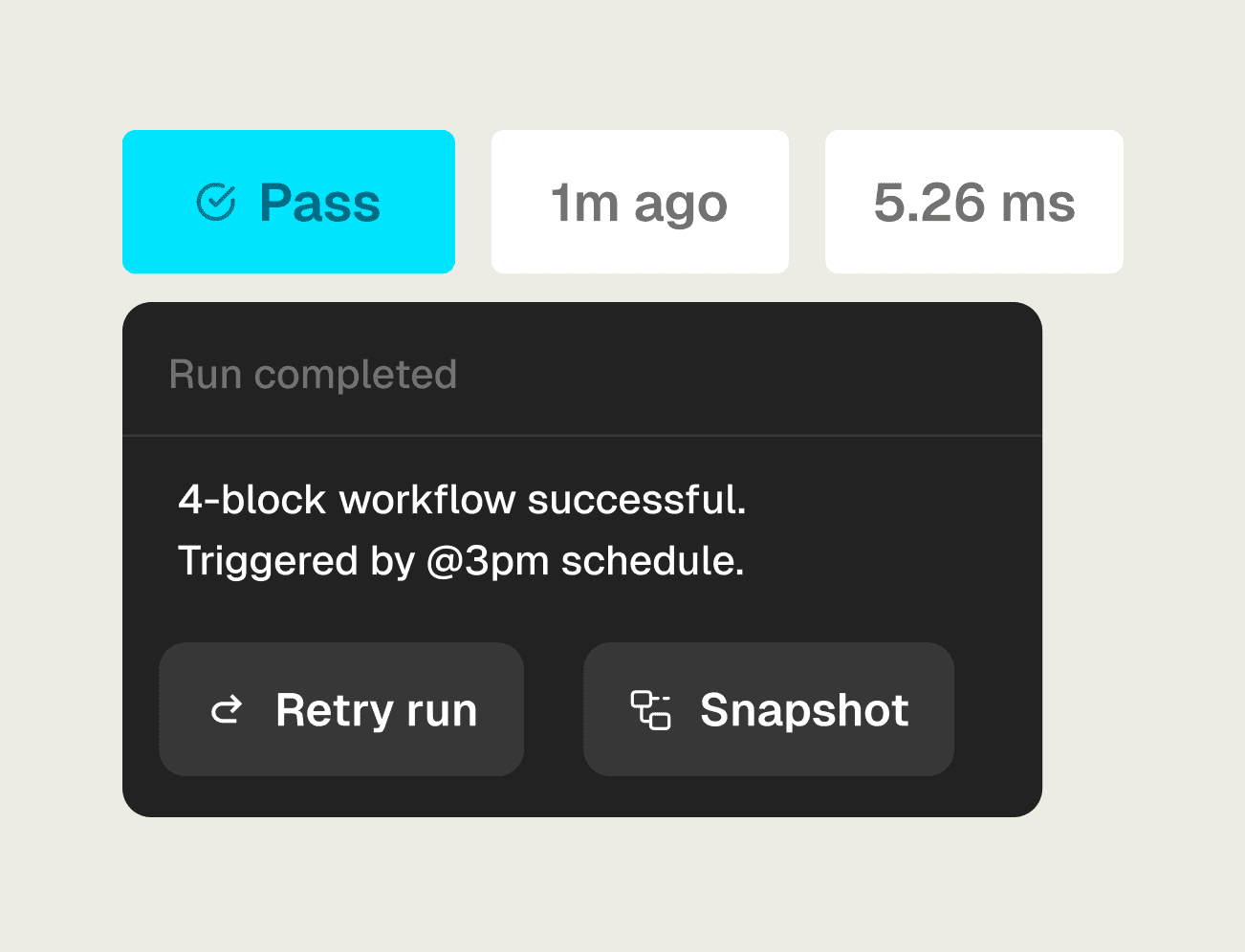Each output is backed by preserved execution state and history, so you can inspect, reproduce, and recover runs as data and logic evolve.
