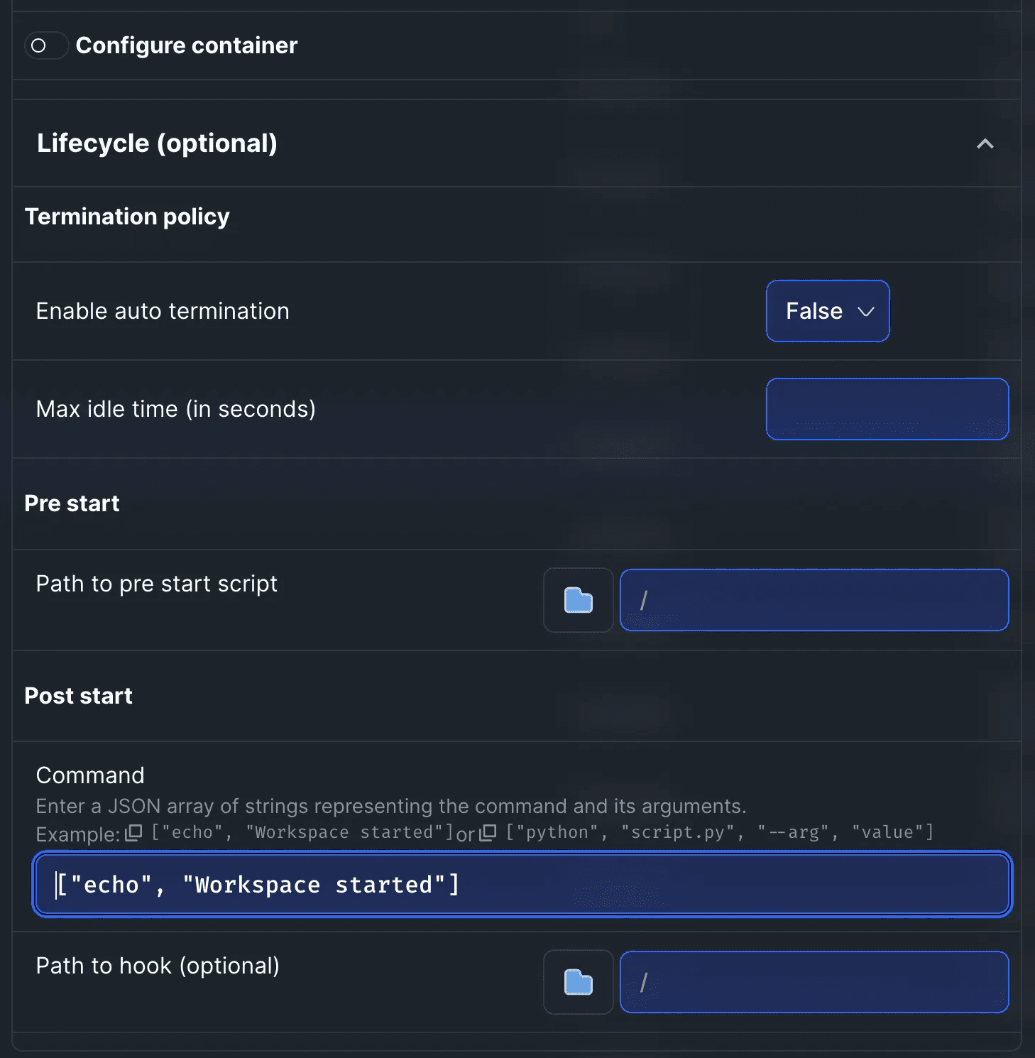 The experience of configuring lifecycle hooks for workspaces has been improved, with more flexible command formats and more reliable execution of post-start scripts.