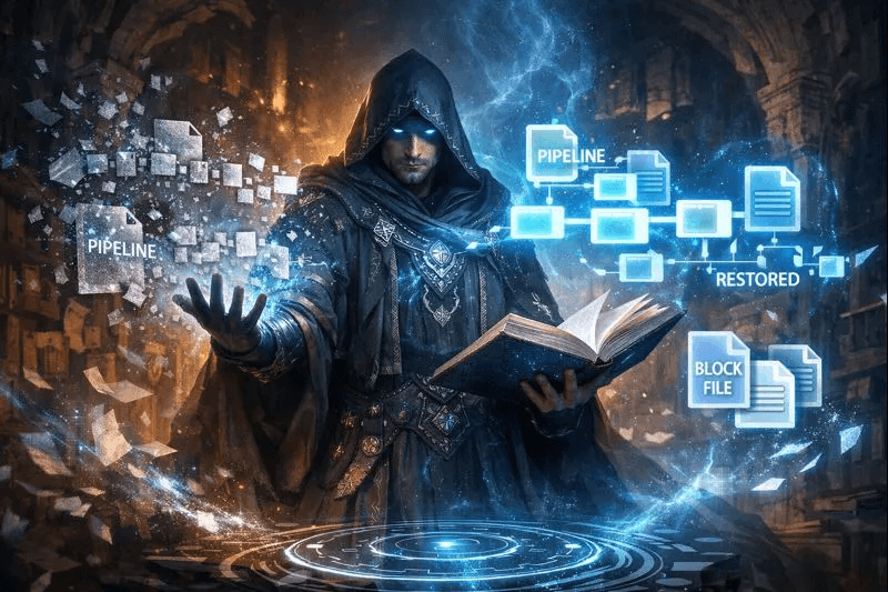 Mage Pro introduces a new CLI command that makes it easy to recover pipeline and block files from historical file versions when pipelines are accidentally deleted, overwritten, or lost.